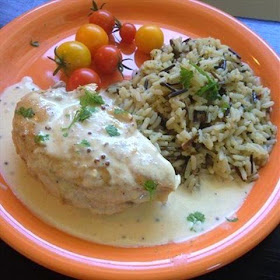 Put butter into pan and melt. Pound chicken breasts if needed to flatten meat out. Season chicken with salt and pepper. Add chicken and brown on both sides, making sure the chicken is cooked through. Pull chicken out of pan and set aside. Wipe pan (I use a paper towel) and place back on burner. Add heavy whipping cream and Dijon mustard, stirring until blended. Add chicken back in and lower heat to a simmer. Let cook for 10 minutes. Rice prep - I don't know about you, but I had a really hard time getting my brown rice cooked all the way! That is, until I found these great directions: Use 1 cup dry rice to 4 cups water. Rinse rice. Bring water to boil and then add rice. Cook for 30 minutes with lid off. Then drain the rice of excess water and put it back into the pot (off heat) putting on the lid. Let steam for 10 minutes. (It is a lengthy process, but well worth it!)