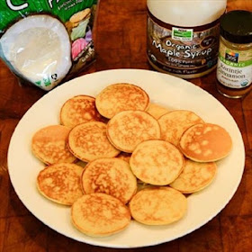 In a large bowl, whisk the eggs really well. Sift in the coconut flour, and quickly whisk to mix well. Add coconut milk, and continue to mix well. Optional: Stir in maple syrup (or use raw honey) and seasonings. Use butter to grease griddle at 325ºF or pan over medium heat. Use a tablespoon to pour batter onto the griddle for each pancake. Cook, allowing each side to brown before flipping it. Pour about 1/4 cup of batter onto the griddle for each pancake, allowing each side to brown before flipping it. (Watch carefully so they don’t burn!)