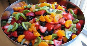 Mix all of the fruit in a bowl. Hint: Use a bigger bowl than you think you'll need to keep ingredients from falling out while mixing. The best way to mix is to use your (super clean washed) hands. Be gentle to keep the fruit from breaking up.