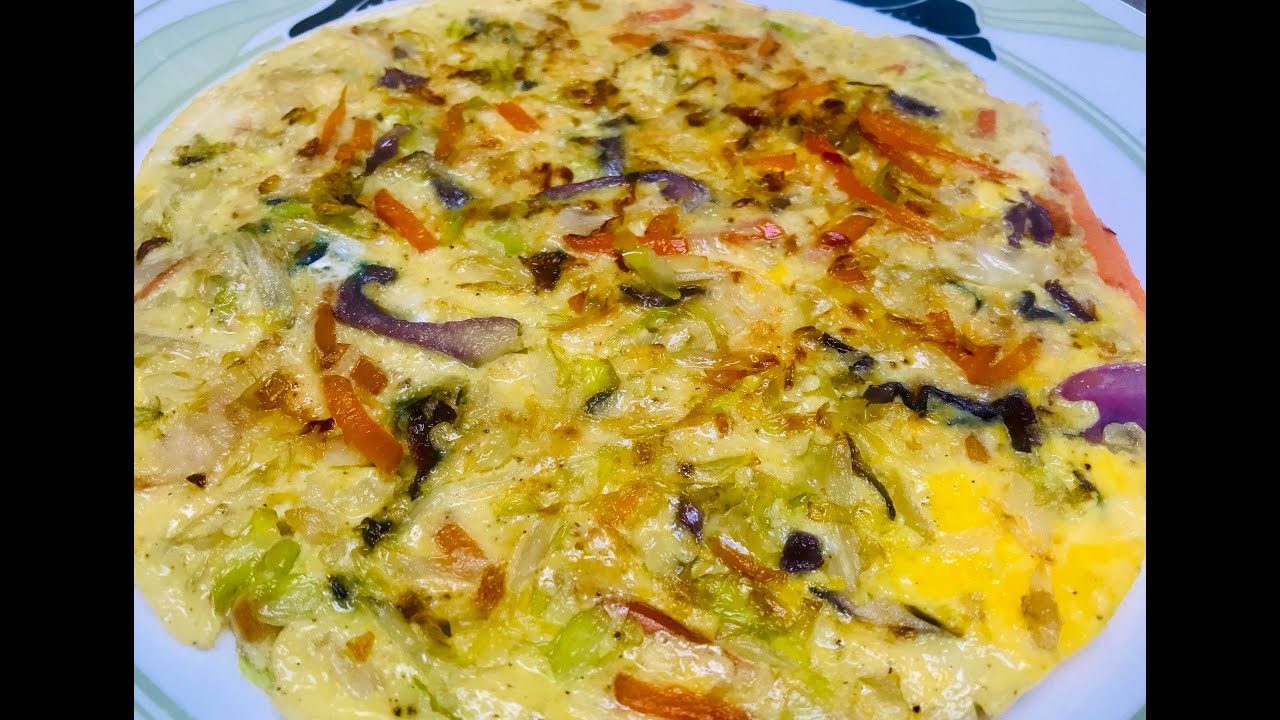 In a wide bowl mix cabbage, grated carrots. Lightly fry cabbage. Lightly beat eggs, add salt and pepper and any spices you like.